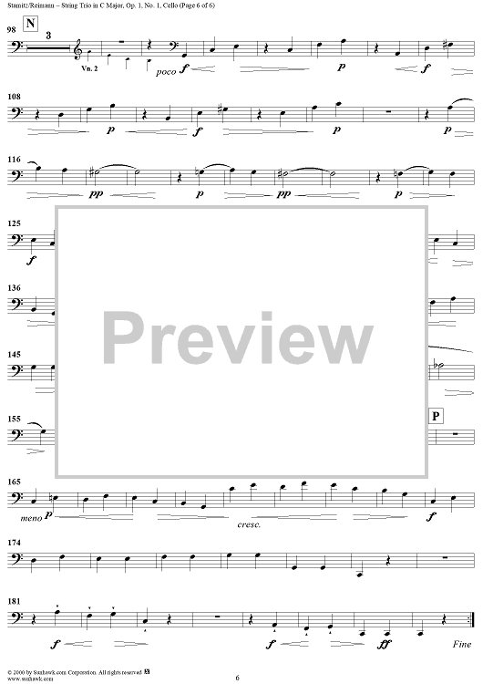 "String Trio in C Major, Op.1, No. 1 - Cello" Sheet Music by Johann Stamitz