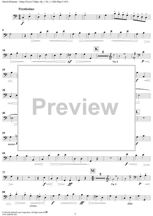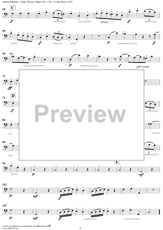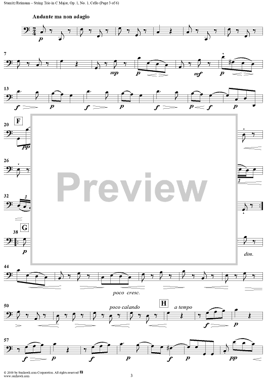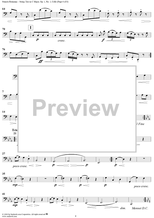 Digital Sheet Music for String Trio in C Major, Op.1, No. 1 - Cello by Johann Stamitz scored for Two Violins/Cello; id:235821