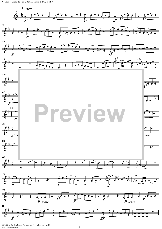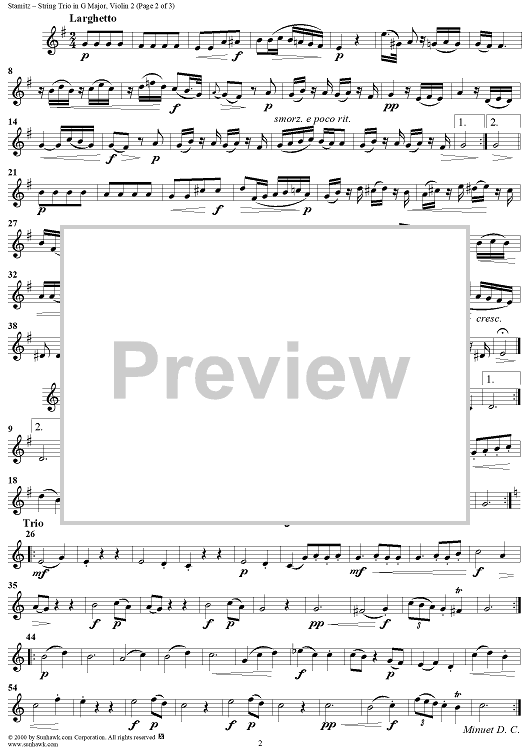Digital Sheet Music for String Trio in G major op. 1, no. 6 - Violin 2 by Johann Stamitz scored for Two Violins/Cello; id:235144