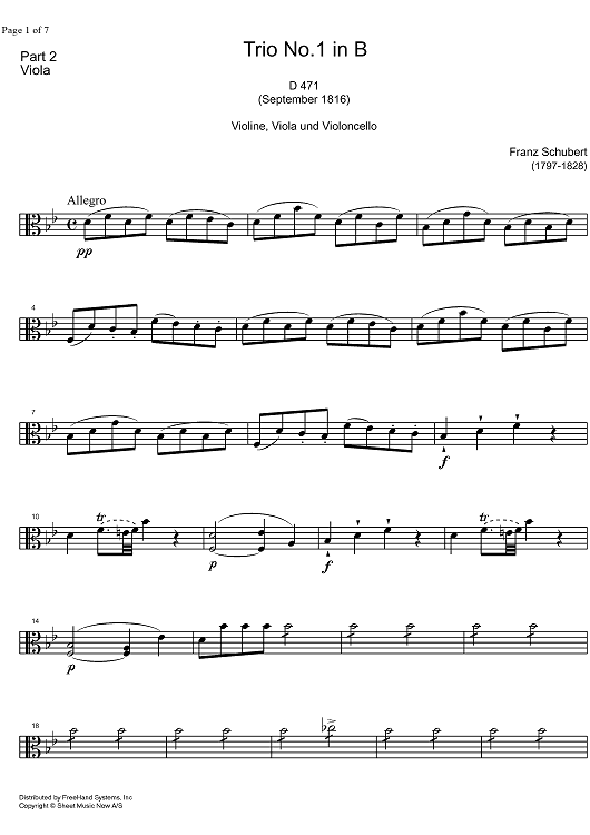 "String Trio No. 1 B Major D471 - Viola" Sheet Music by Franz Schubert