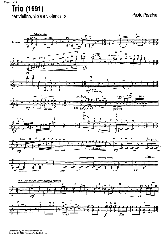 "String Trio - Violin" Sheet Music by Paolo Pessina