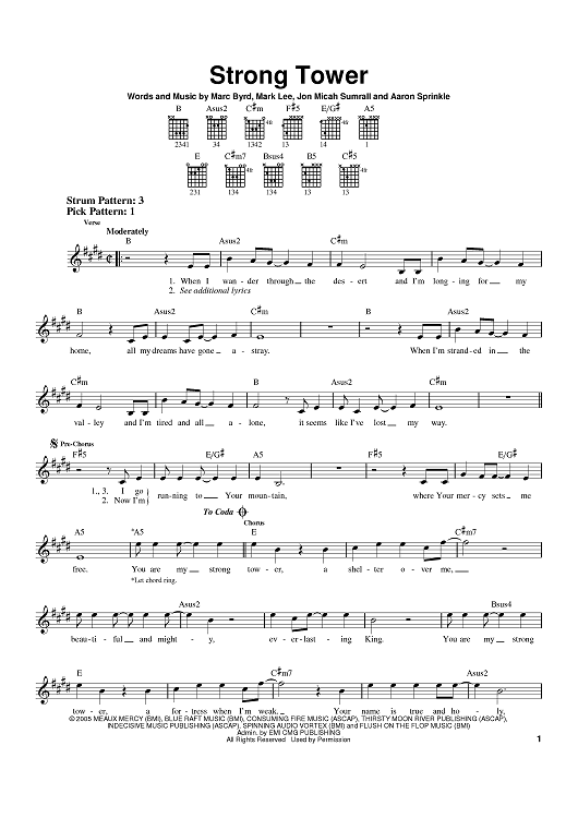 Digital Sheet Music for Strong Tower by Mark David Lee, Marc Byrd, Jon Micah Sumrall, Wild Boar, Kutless scored for Easy Guitar; id:398246
