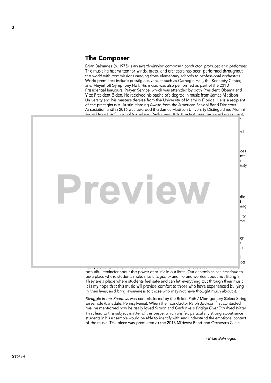 "Struggle in the Shadows - Score" Sheet Music by Brian Balmages