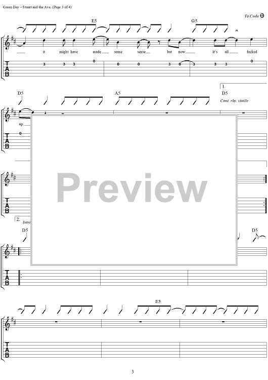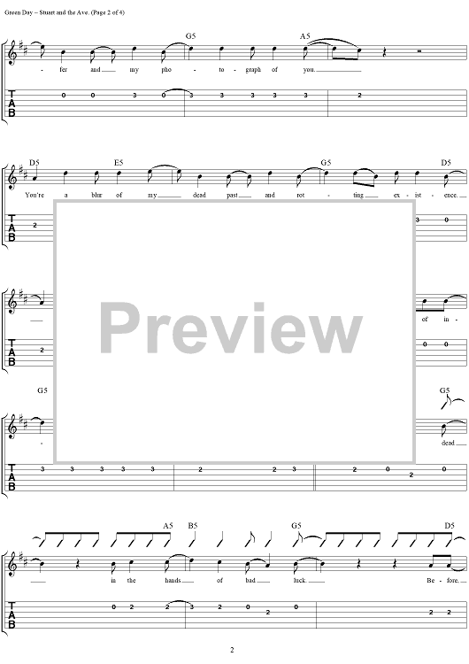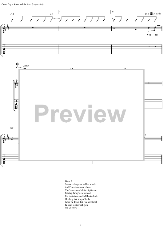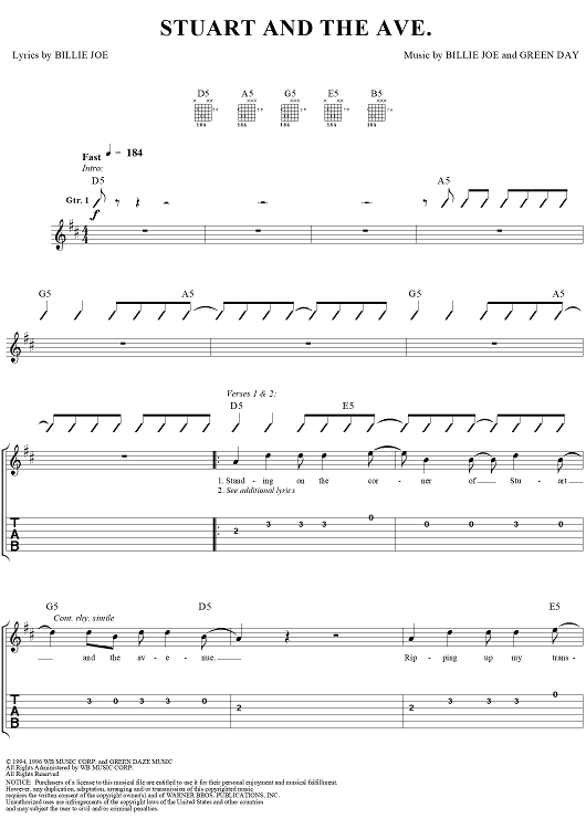 Digital Sheet Music for Stuart and the Ave. by Billie Joe Armstrong, Green Day scored for Easy Guitar/Vocal; id:120679