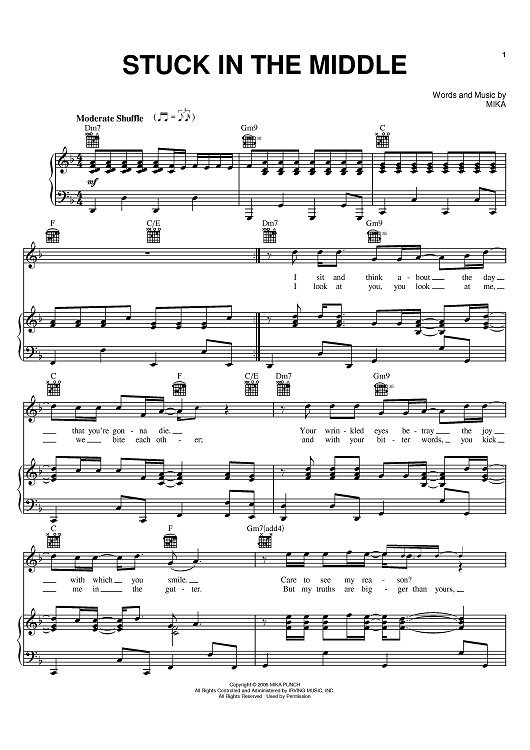 Digital Sheet Music for Stuck In The Middle by Mika scored for Piano/Vocal/Chords; id:397648