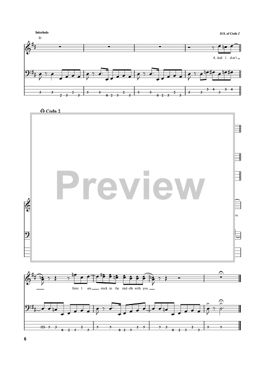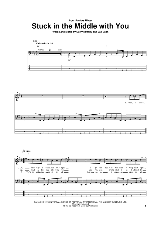 Digital Sheet Music for Stuck In The Middle With You by Joe Egan, Gerry Rafferty, Stealers Wheel scored for Bass Tab; id:383066