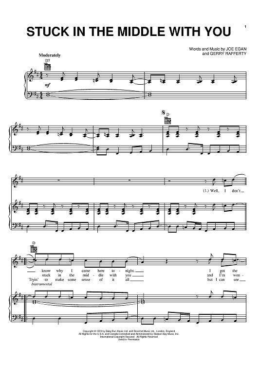 "Stuck In The Middle With You" Sheet Music by Stealers Wheel