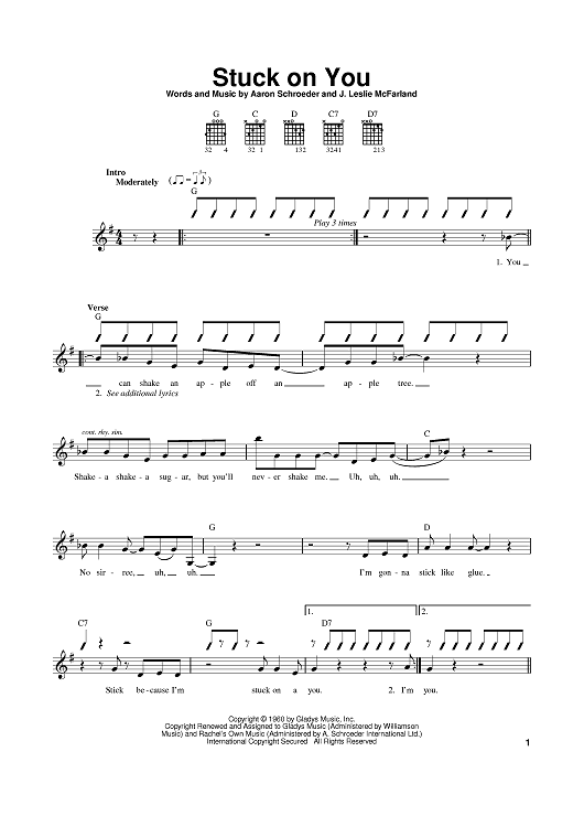 Digital Sheet Music for Stuck On You by Elvis Presley, Aaron Schroeder, J. Leslie McFarland scored for Easy Guitar; id:369615