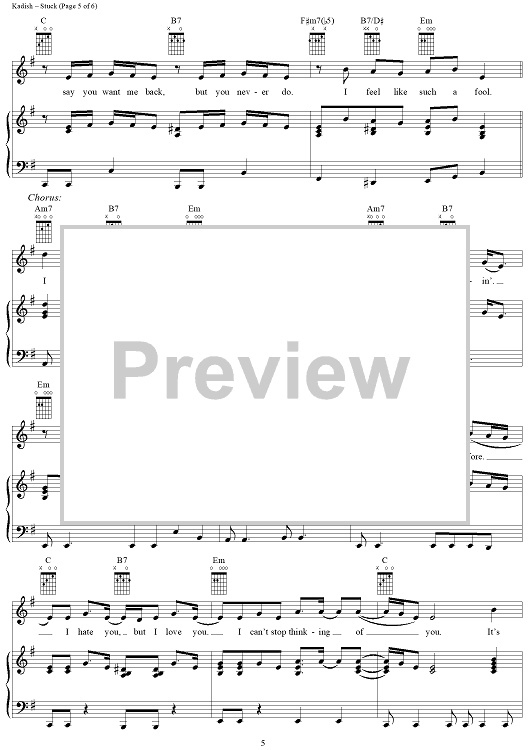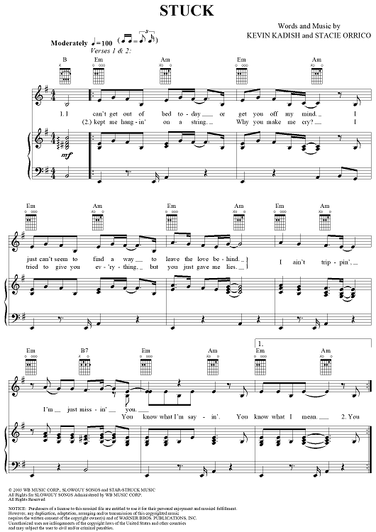 Digital Sheet Music for Stuck by Kevin Kadish, Stacie Orrico scored for Piano/Vocal/Chords; id:296924