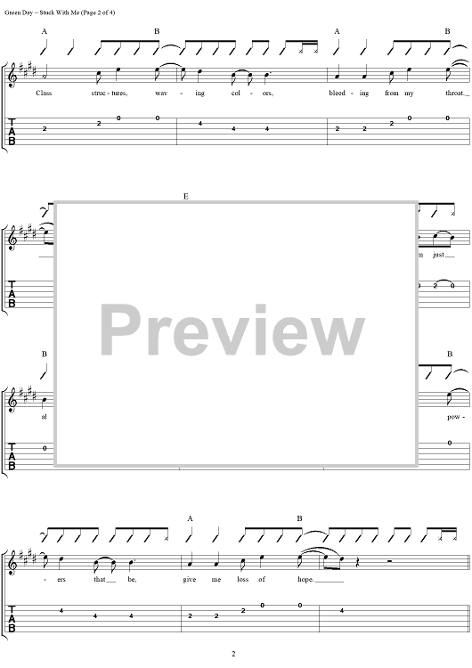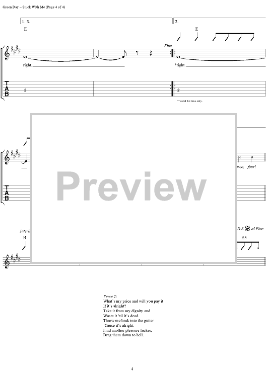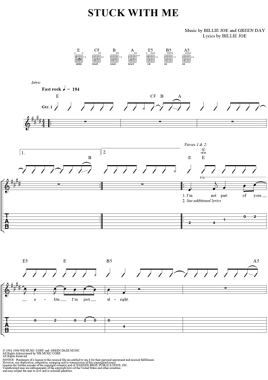 "Stuck With Me" Sheet Music by Green Day