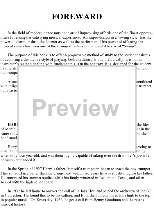 "Studies and Improvisations for Trumpet: Foreword/Bio" Sheet Music by Harry James