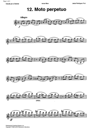 "Studies for clarinet, Vol. 3 No.12 - Moto perpetuo - Clarinet" Sheet Music by Jesús Rodríguez Picó