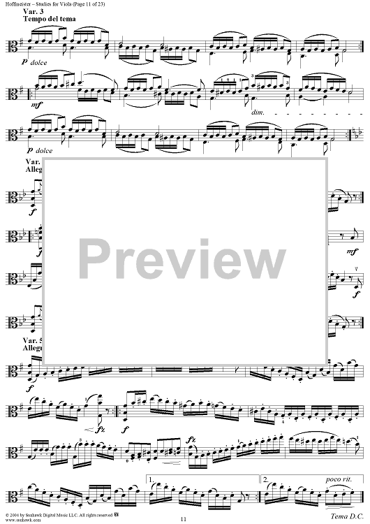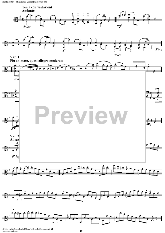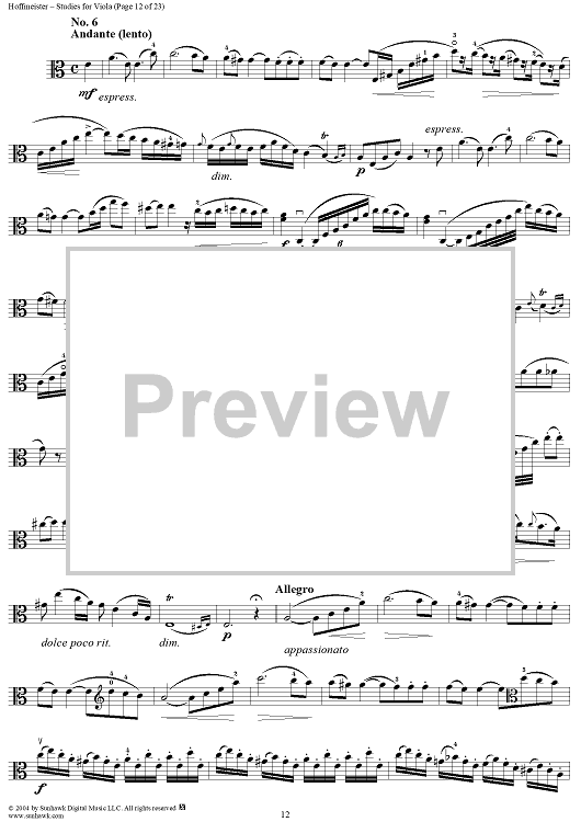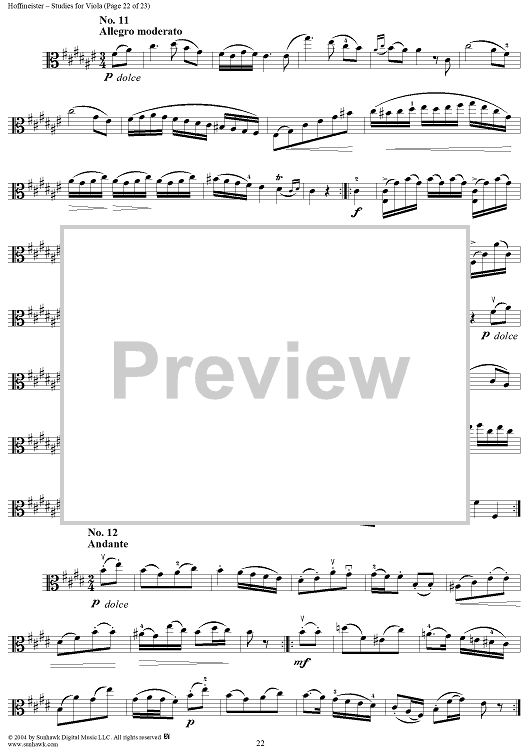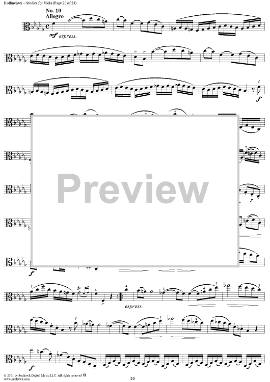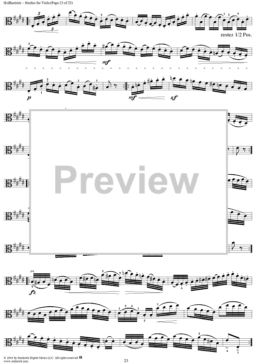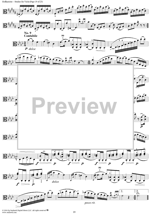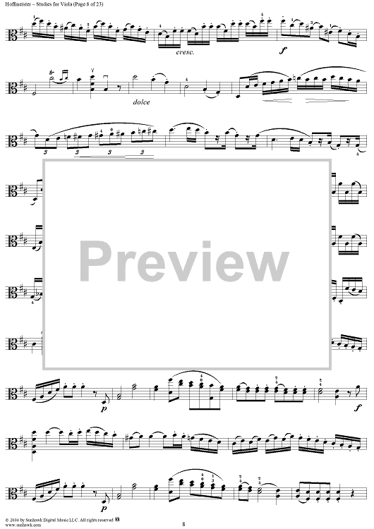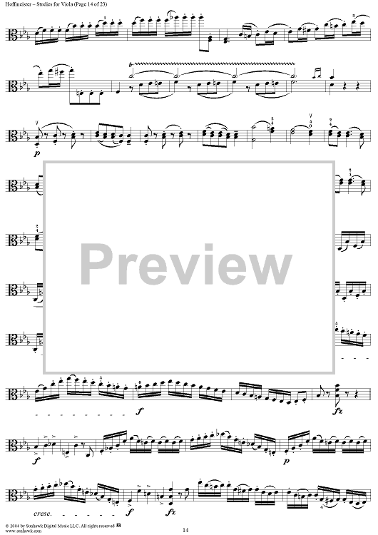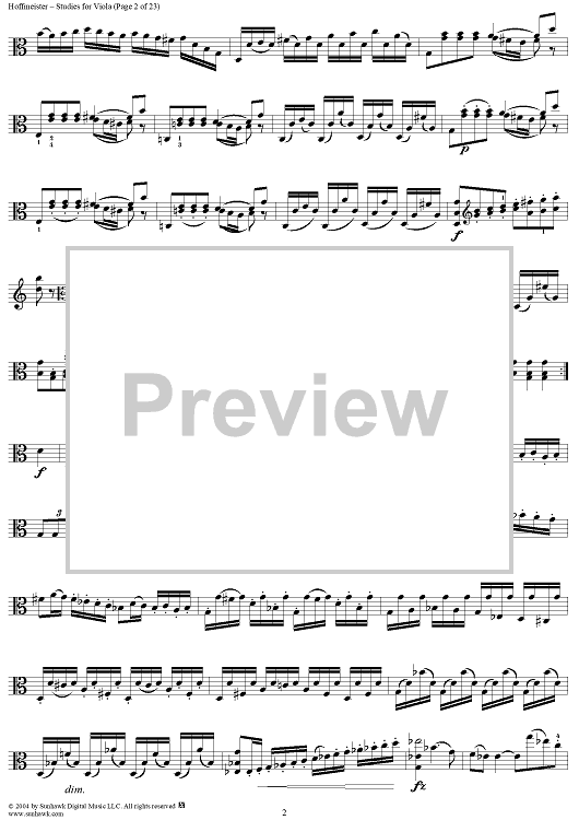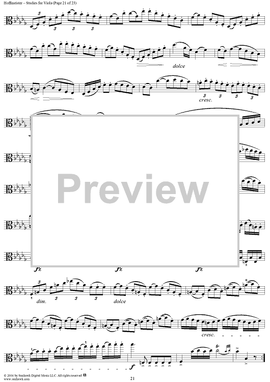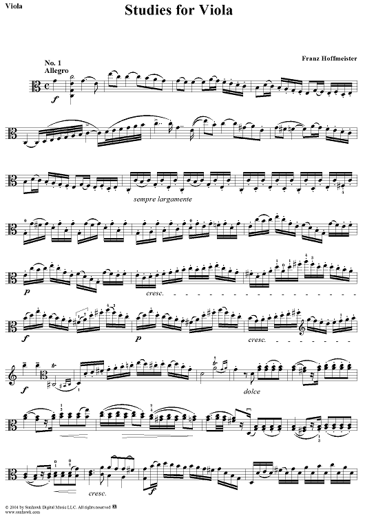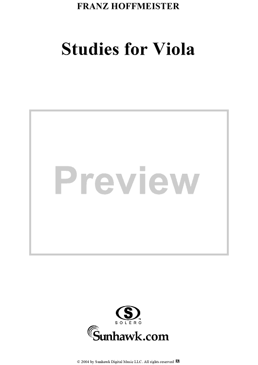 Digital Sheet Music for Studies for Viola by Franz Anton Hoffmeister scored for Viola Studies; id:306421
