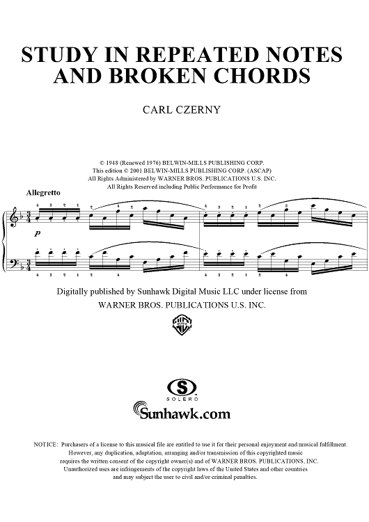 Digital Sheet Music for Study in Repeated Notes and Broken Chords by Carl Czerny, John W. Schaum scored for Piano Solo; id:293119