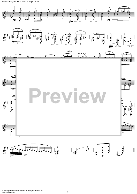 "Study No. 68 in E Minor" Sheet Music by Jacques-Féréol Mazas