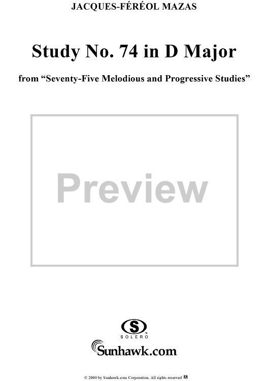 "Study No. 74 in D Major" Sheet Music by Jacques-Féréol Mazas