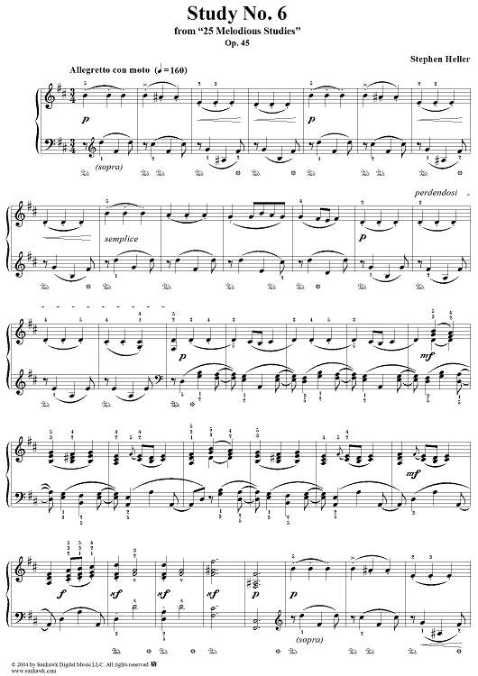 "Study, Op. 45, No. 6" Sheet Music by Stephen Heller