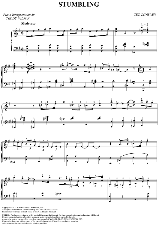 Digital Sheet Music for Stumbling by Teddy Wilson, Zez Confrey scored for Piano Solo; id:119933