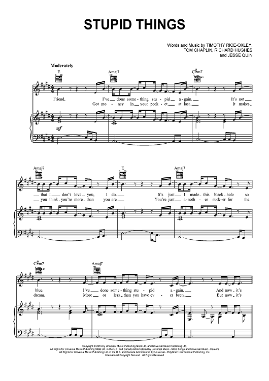 Digital Sheet Music for Stupid Things by Keane, Tim Rice-Oxley, Tom Chaplin, Richard David Hughes, Jesse Quin scored for Piano/Vocal/Chords; id:467824