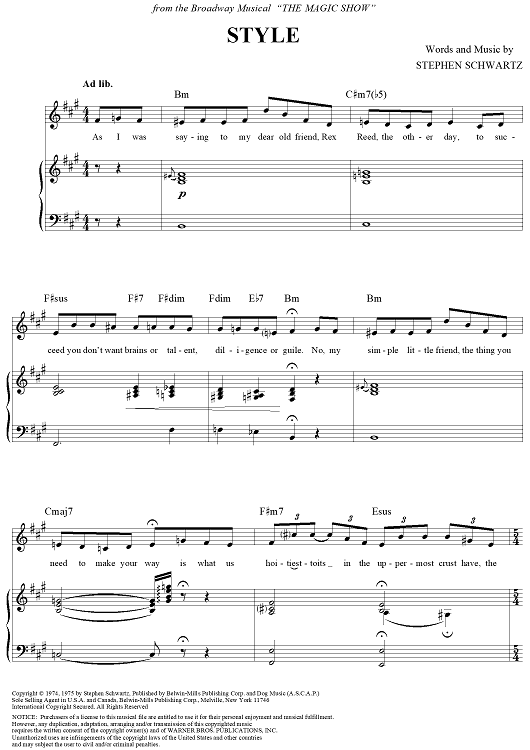Digital Sheet Music for Style by Stephen Schwartz, Doug Henning scored for Piano/Vocal/Chords; id:356249