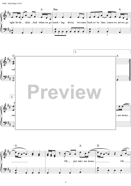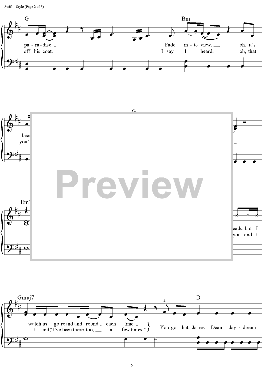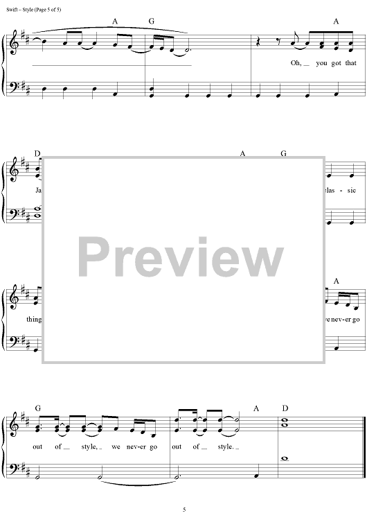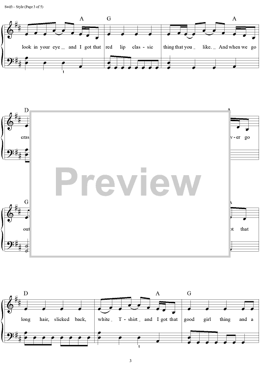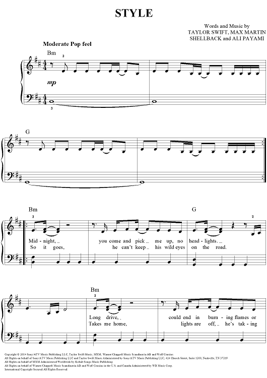 Digital Sheet Music for Style by Max Martin, Taylor Swift, Shellback, Ali Payami scored for Easy Piano/Vocal/Chords; id:460111