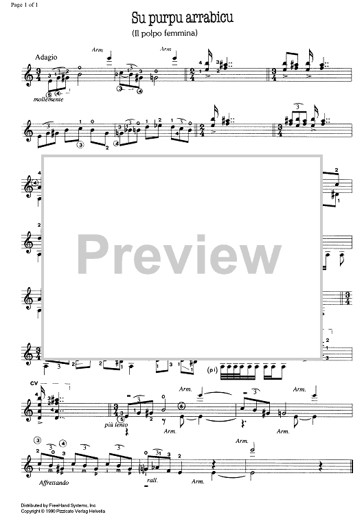 Digital Sheet Music for Su purpe arrabicu by Giuliano Manzi scored for Guitar; id:335339