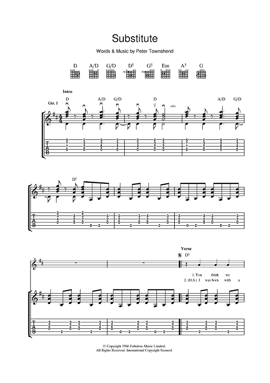"Substitute" Sheet Music by The Who