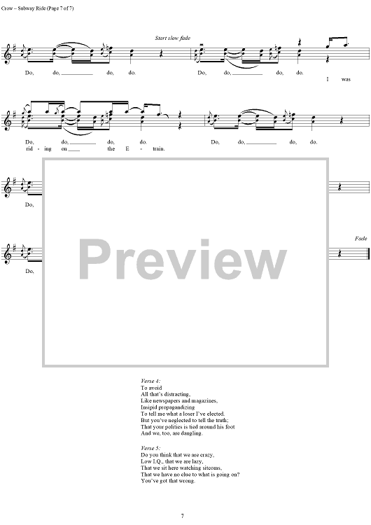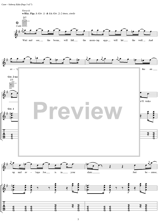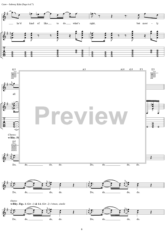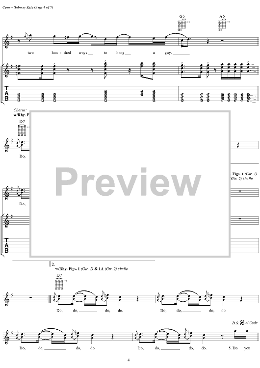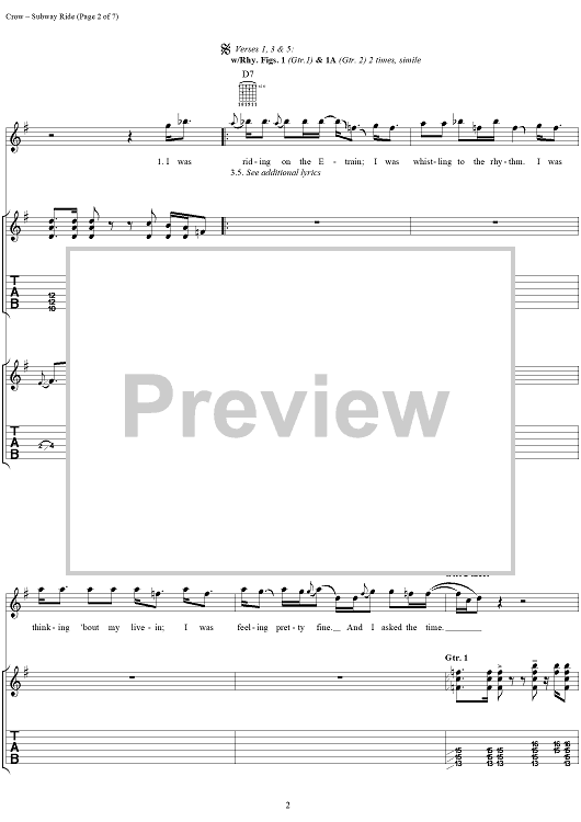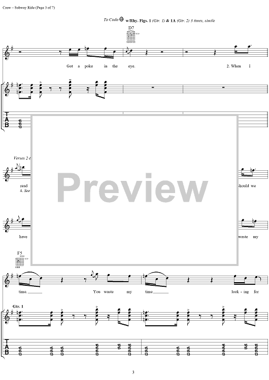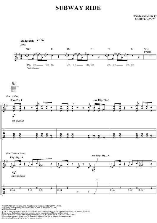 Digital Sheet Music for Subway Ride by Sheryl Crow scored for Guitar Tab/Vocal; id:272056