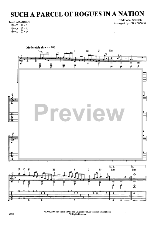 Digital Sheet Music for Such a Parcel of Rogues in a Nation (With Embedded Audio) by Traditional Scottish, Jim Tozier scored for Guitar Tab; id:451645