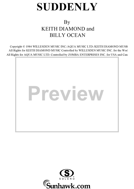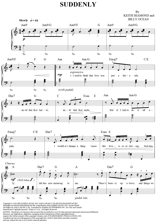 Digital Sheet Music for Suddenly by Billy Ocean, Keith Diamond scored for Piano/Vocal/Chords; id:120616