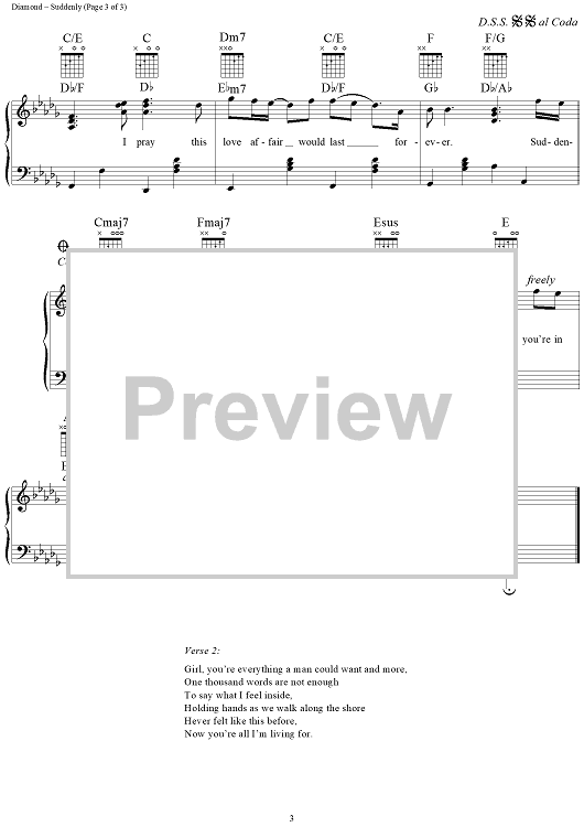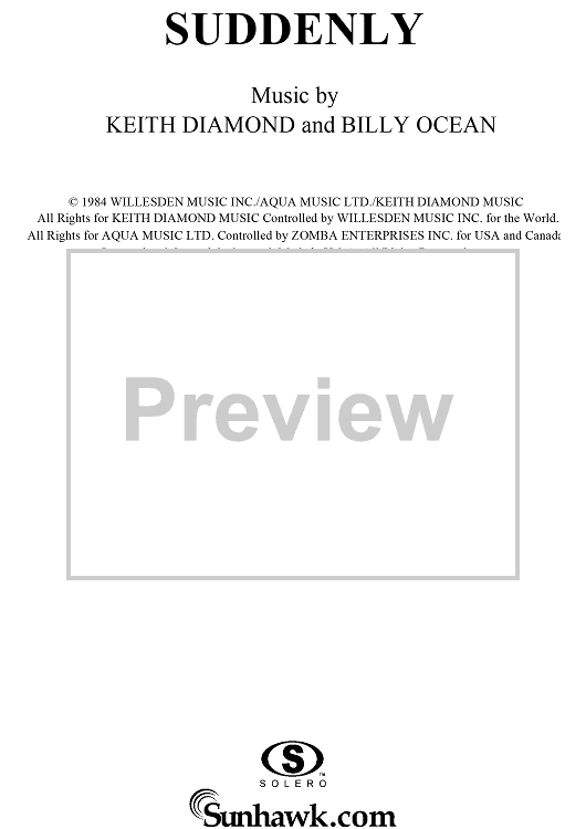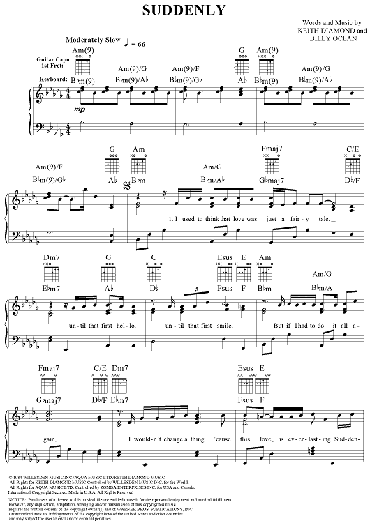 Digital Sheet Music for Suddenly by Billy Ocean, Keith Diamond scored for Piano/Vocal/Chords; id:271338