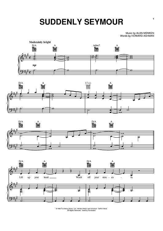 Digital Sheet Music for Suddenly Seymour by Alan Menken, Howard Ashman scored for Piano/Vocal/Chords; id:374871