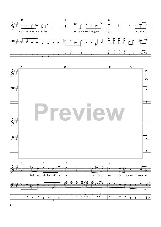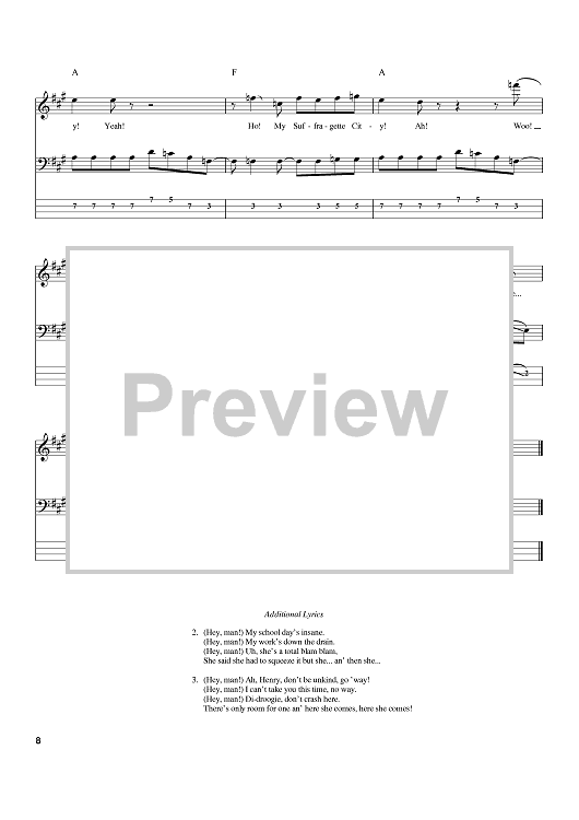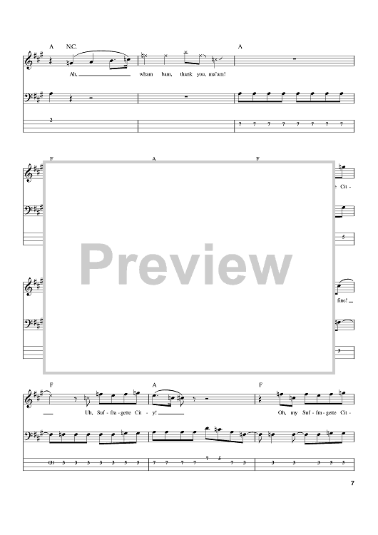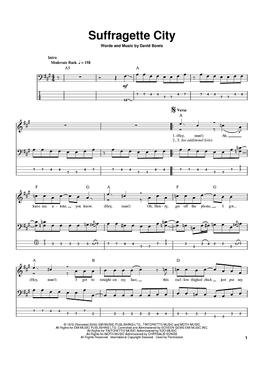 Digital Sheet Music for Suffragette City by David Bowie scored for Bass Tab; id:384375