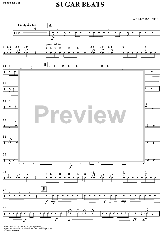 Digital Sheet Music for Sugar Beats by Wally Barnett scored for Snare Drum/Piano; id:439486
