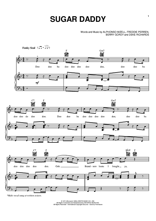 Digital Sheet Music for Sugar Daddy by Berry Gordy Jr., Freddie Perren, Deke Richards, The Jackson 5, Alphonso Mizell scored for Piano/Vocal/Chords; id:386751