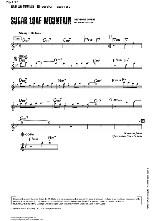 Digital Sheet Music for Sugar Loaf Mountain by , Pete Churchill, George Duke scored for E-flat Lead Sheet; id:355578