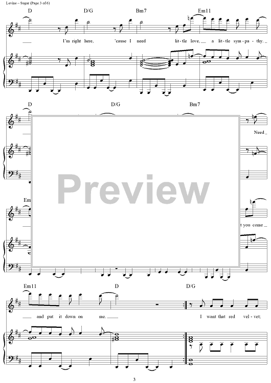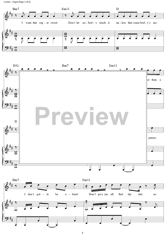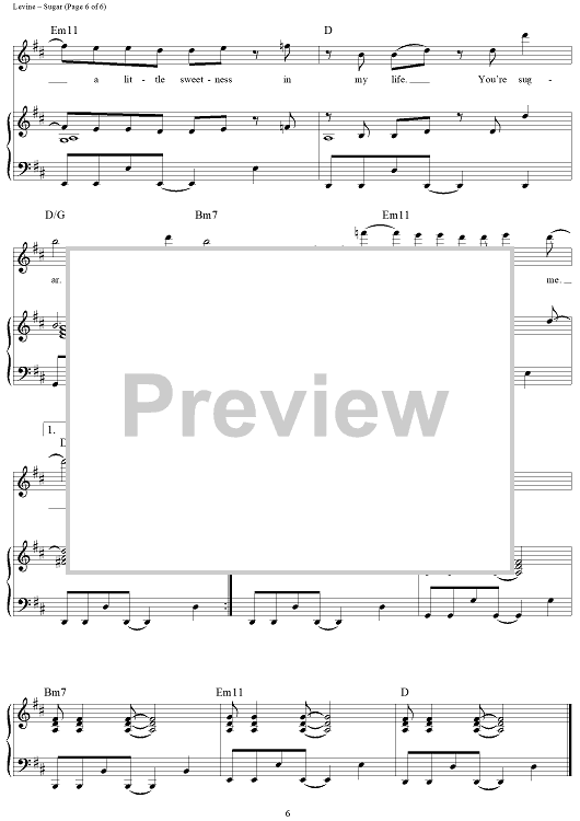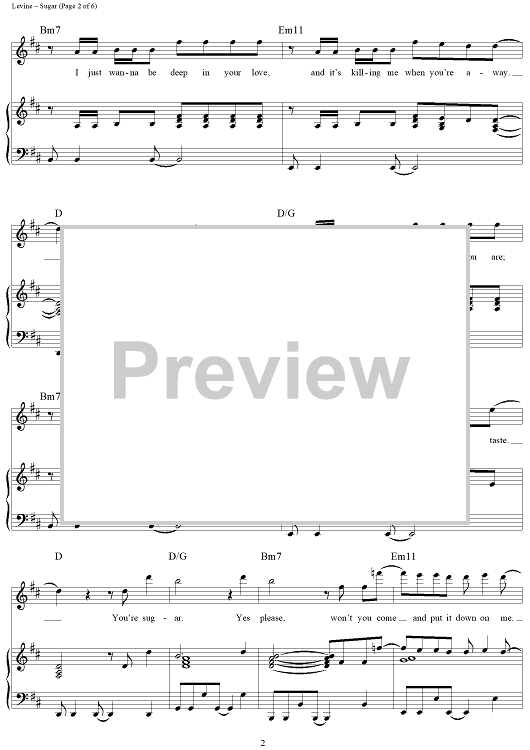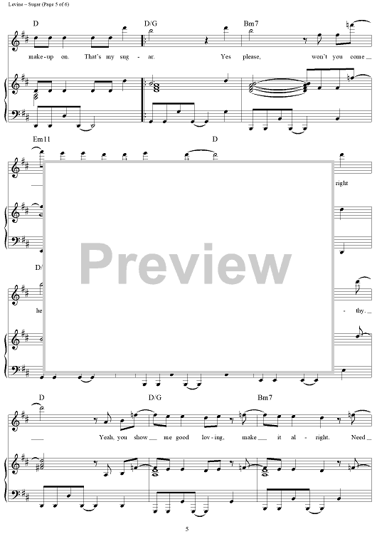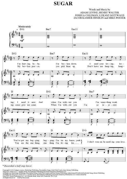 Digital Sheet Music for Sugar by Adam Levine, Maroon 5, Lukasz Gottwald, Ammo, Mike Posner, Jacob Hindlin, Henry Walter scored for Piano/Vocal/Chords; id:448488