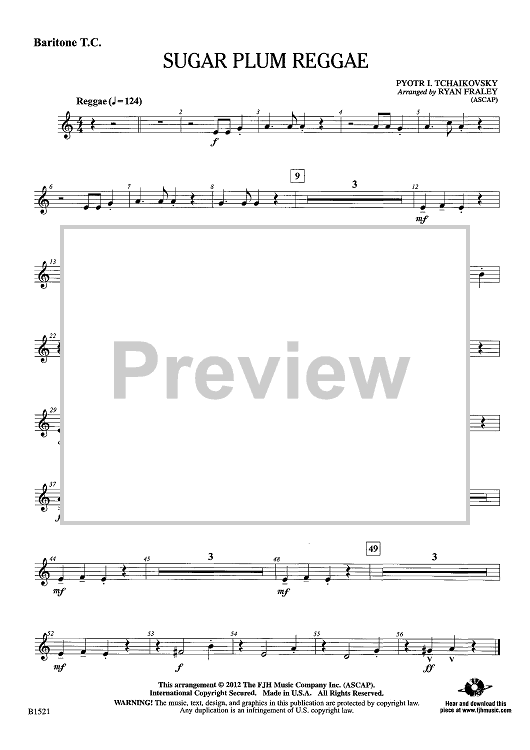 Digital Sheet Music for Sugar Plum Reggae - Baritone TC by Peter Ilyich Tchaikovsky, Ryan Fraley scored for Concert Band; id:439954