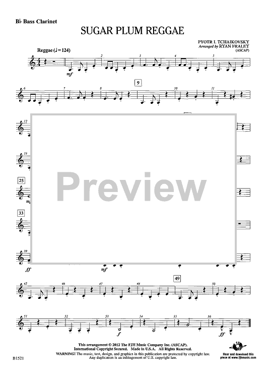 Digital Sheet Music for Sugar Plum Reggae - Bb Bass Clarinet by Peter Ilyich Tchaikovsky, Ryan Fraley scored for Concert Band; id:439944