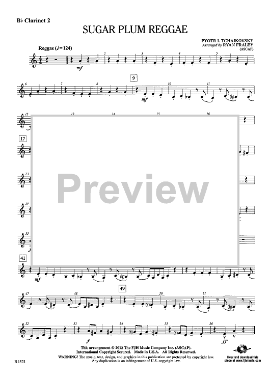 Digital Sheet Music for Sugar Plum Reggae - Bb Clarinet 2 by Peter Ilyich Tchaikovsky, Ryan Fraley scored for Concert Band; id:439943