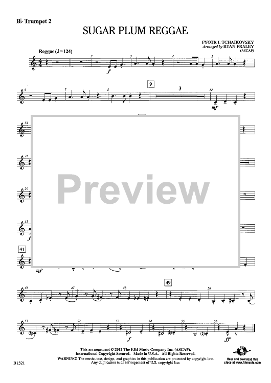 Digital Sheet Music for Sugar Plum Reggae - Bb Trumpet 2 by Peter Ilyich Tchaikovsky, Ryan Fraley scored for Concert Band; id:439950