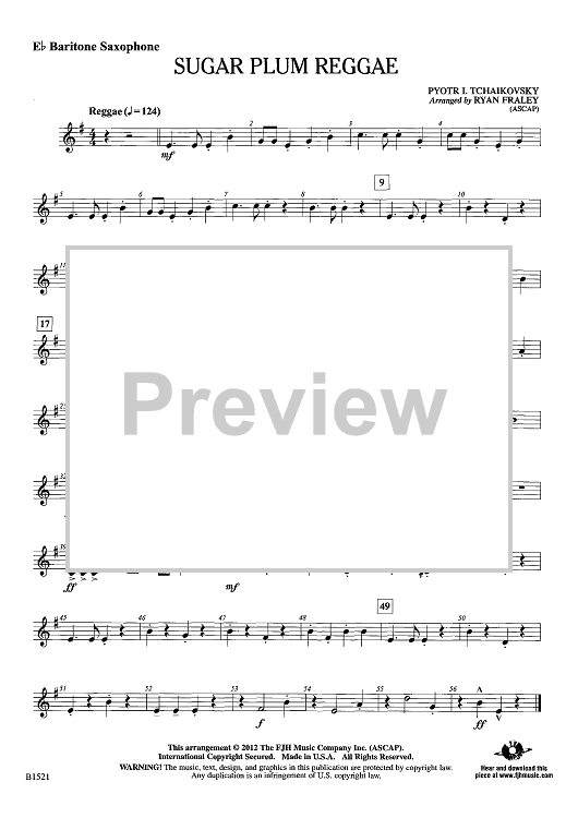 Digital Sheet Music for Sugar Plum Reggae - Eb Baritone Sax by Peter Ilyich Tchaikovsky, Ryan Fraley scored for Concert Band; id:439948