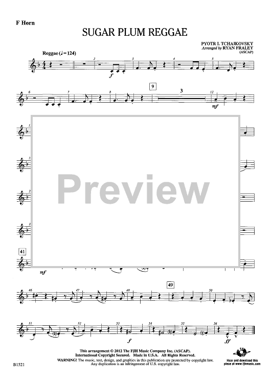 Digital Sheet Music for Sugar Plum Reggae - F Horn by Peter Ilyich Tchaikovsky, Ryan Fraley scored for Concert Band; id:439951