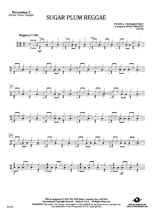 Digital Sheet Music for Sugar Plum Reggae - Percussion 2 by Peter Ilyich Tchaikovsky, Ryan Fraley scored for Concert Band; id:439960