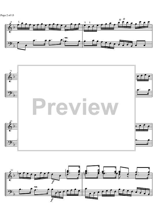 Digital Sheet Music for Suite 4 F Major BWV 809 - Score by , Johann Sebastian Bach, Safri Duo scored for 2 Marimbas or Vibraphones; id:327385
