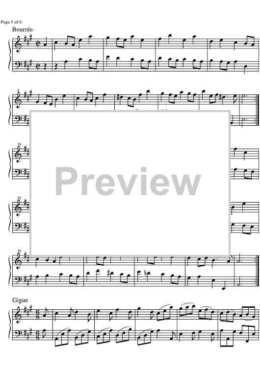 Digital Sheet Music for Suite A Major BWV 832 by Johann Sebastian Bach scored for Keyboard; id:326611