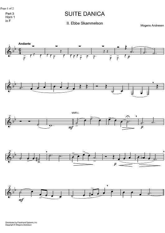 "Suite Danica - Horn" Sheet Music by Mogens Andresen