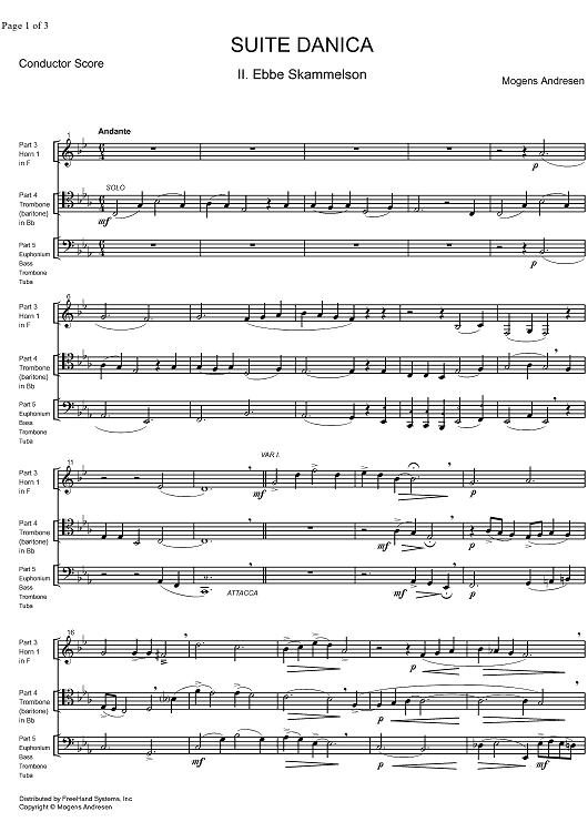 Digital Sheet Music for Suite Danica - Score by , Mogens Andresen scored for Brass Quintet; id:323815