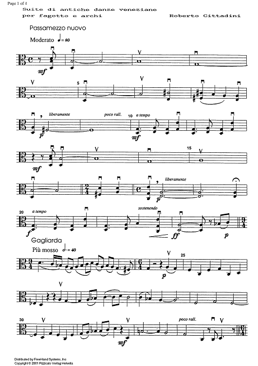 Digital Sheet Music for Suite di antiche danze veneziane - Viola by Roberto Cittadini scored for Bassoon/Strings; id:354286