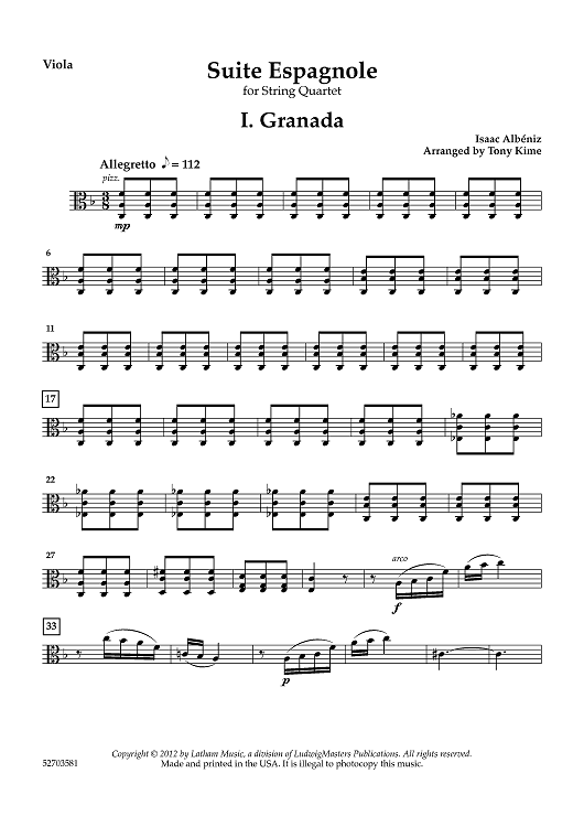 Digital Sheet Music for Suite Espagnole - Viola by Isaac Albéniz, Tony Kime scored for String Quartet; id:464181